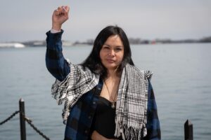 Eve is a Wet’suwet’en Land Defender, Financial Divestment Campaigner and mother of two, and a leading organizer in the movement urging RBC to divest from Coastal GasLink and the fossil fuel industry. Eve is the daughter of Chief Woos, one of Wet’suwet’en Hereditary Chiefs. In 2020, Eve was at Gidimt’en Checkpoint during the RCMP’s militarized invasion of unceded territory, where dozens of unarmed Indigenous people were arrested at gunpoint, including many elders and women. Eve has continued to resist Coastal GasLink since then, and in recent years has focused on financial pressure as a strategy to stop CGL Phase 2 and to force the financial system to respect Indigenous rights. Eve has organized an international delegation of Indigenous Land Defenders to RBC’s annual general meeting for the past three years, which has contributed to policy shifts at the bank related to respect for Indigenous rights and funding renewable and clean energy. Eve lives in Tkaronto, where she cares for two beautiful children.