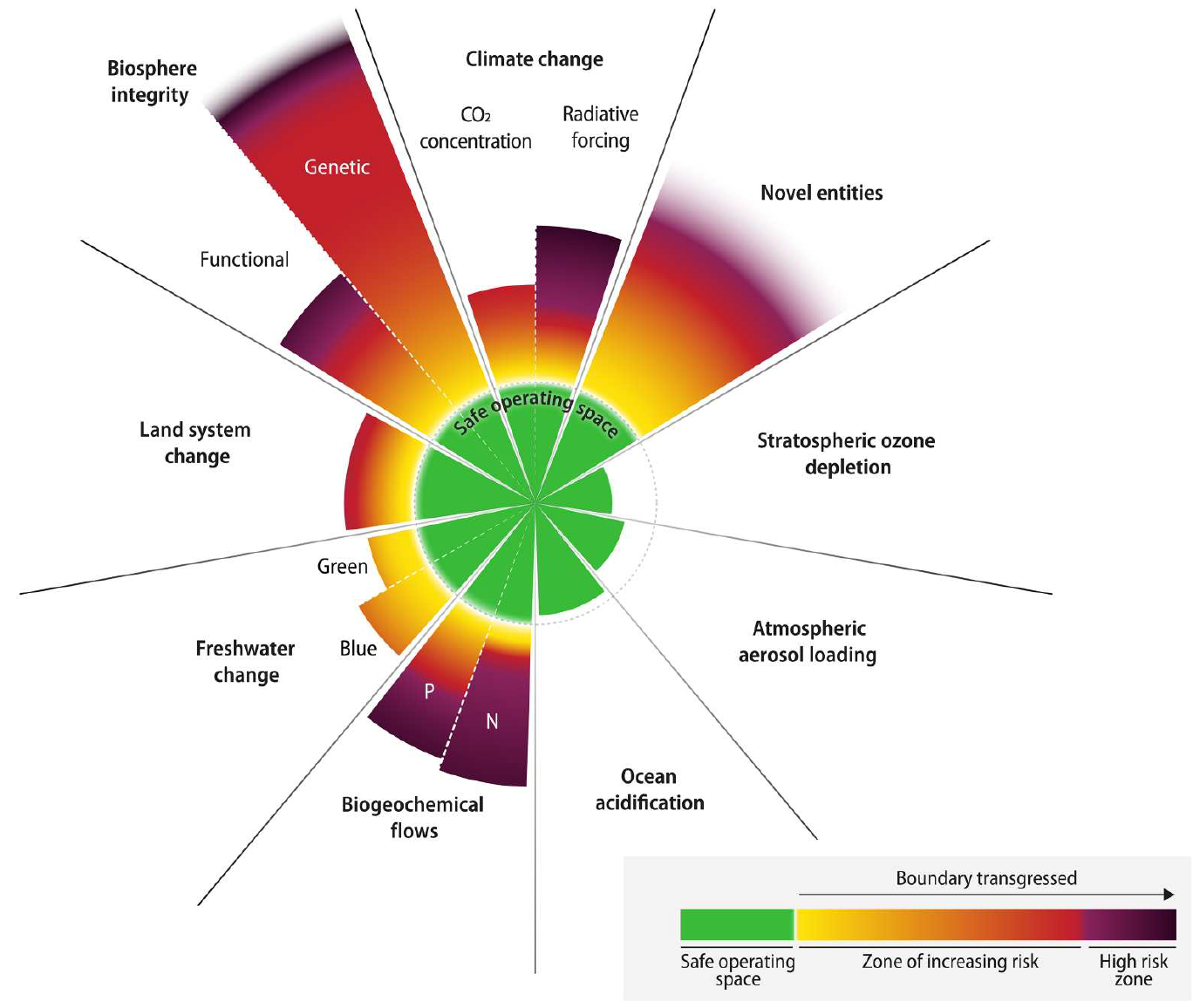 A stable climate is just one of the Earth’s critically exceeded boundaries. Systems and processes involving the biosphere account for four areas of overshoot:
